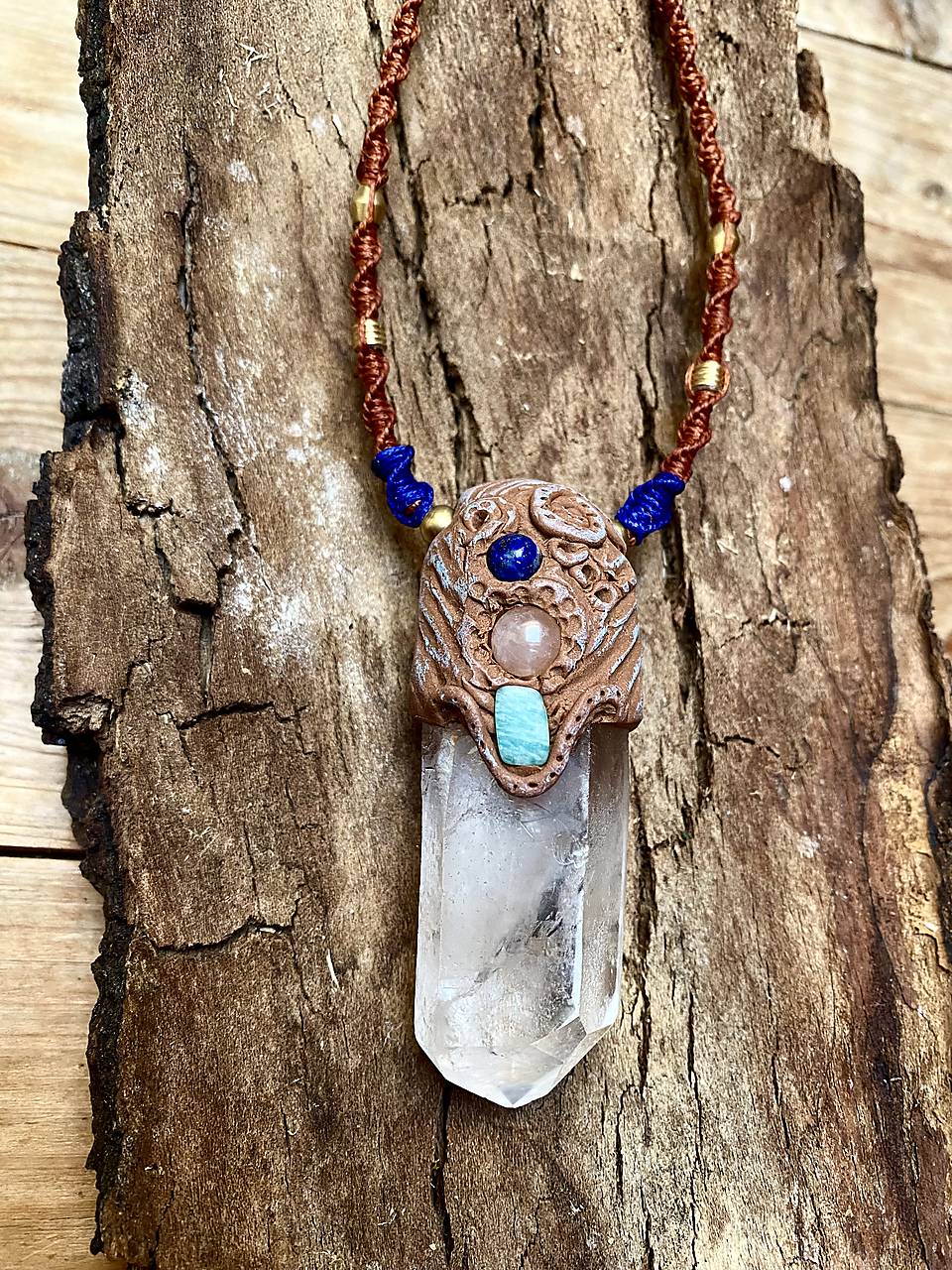 Jedinečný silový amulet s horským Krištáľom, Amazonitom, Ruženínom a s Lapis lazuli pre podoru vnútornej sily.