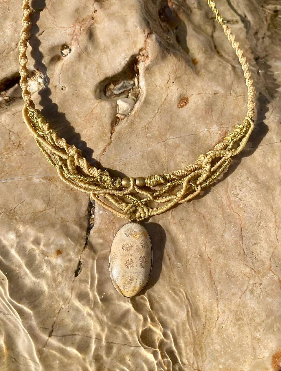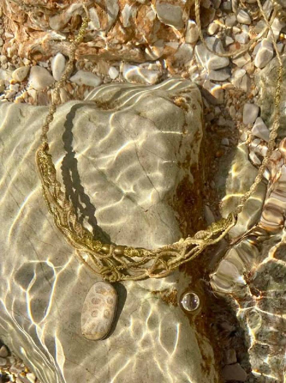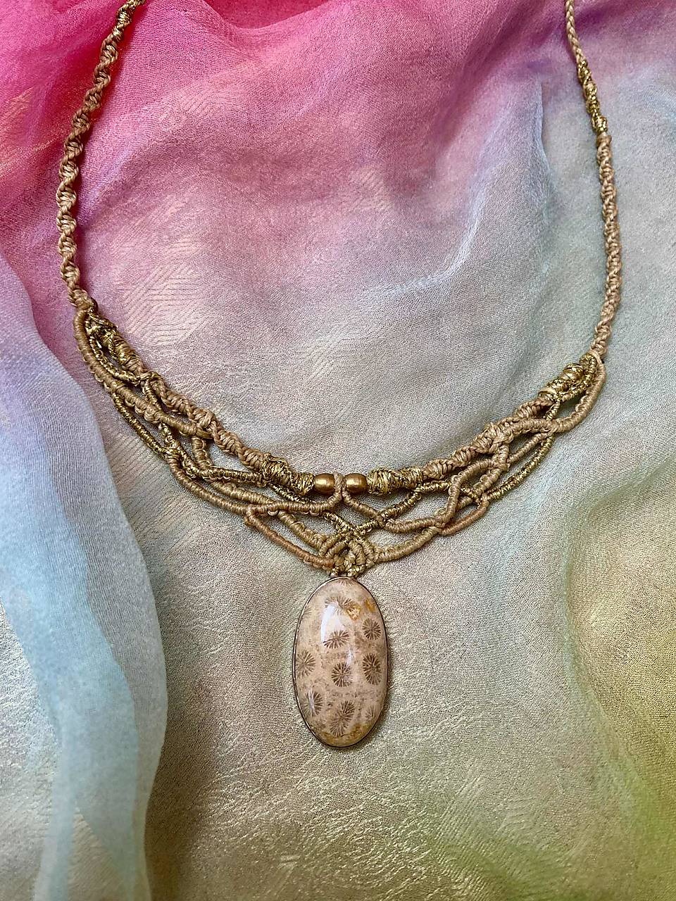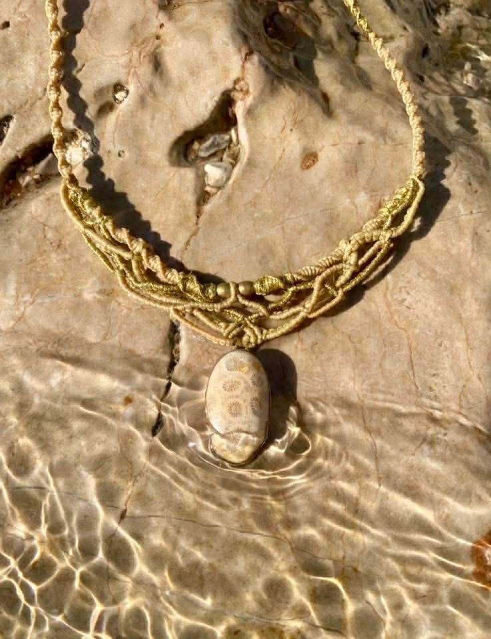 Náhrdelník makramé s prírodným Koralom v striebre