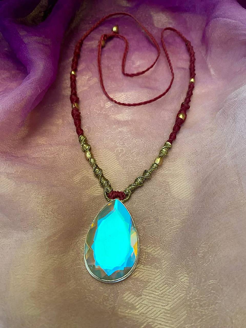 Náhrdelník makramé s Mystickým Topásom v striebre 925