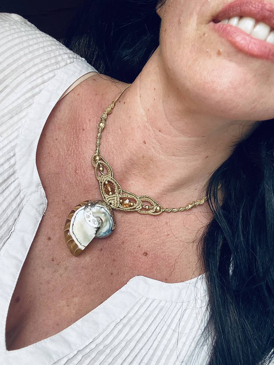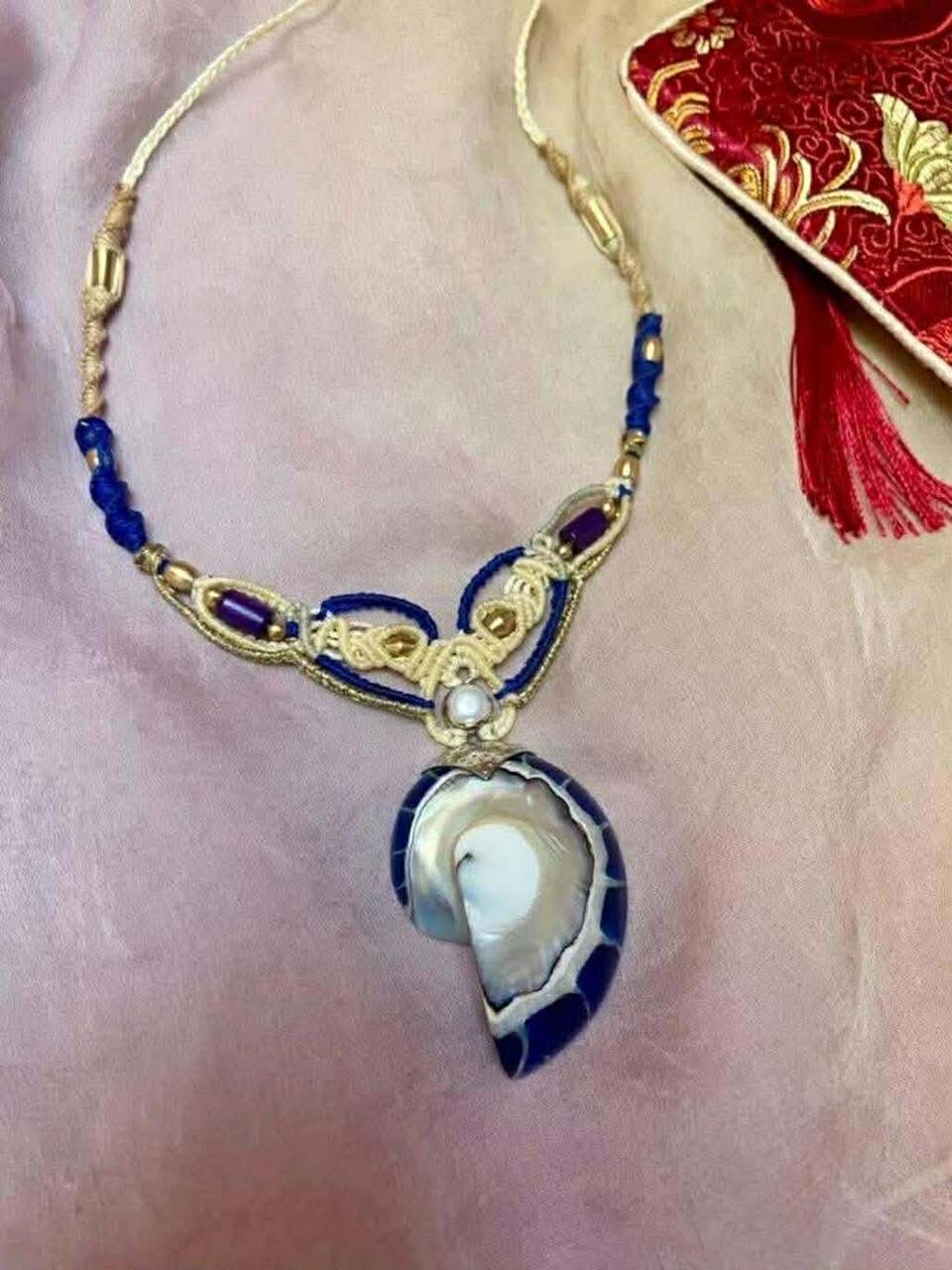 Náhrdelník Dych mora s mušľou Nautilius a s Perlou